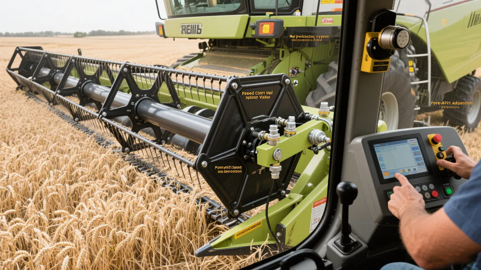 Sonra çarx var. Onun mövqeyini səhv edin və ya ya bitisini itirirsiniz və ya əzirsiniz. Bu dəqiq Harvester Hydravelic Silindr, reelin yuxarı qaldırılmasına, onu irəli sürüşdürməyə və ya bükülməsini yavaşlatmağa imkan verir. Birdən, bitkilər, ehtimal ki, boşluqlar, boşluqlar, məhsulun yuvarlanmasını saxlayan sabit bir axın kimi maşın içərisində maşın içərisindədir.